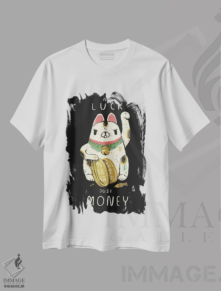 تی شرت هنری «گربه پول ساز»؛ شوخی هوشمندانه با خوش شانسی و استایل شهری