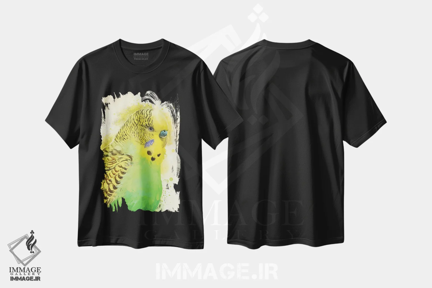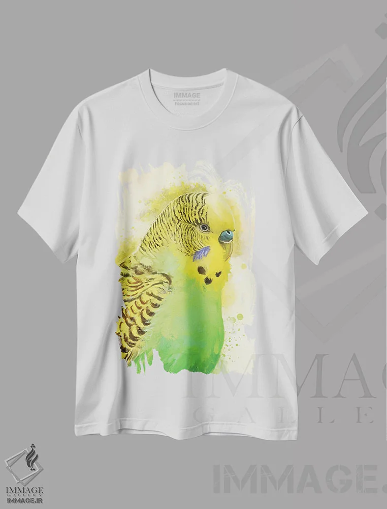 تی شرت «پرتره مرغ عشق سبز»؛ رنگ و زندگی در طراحی دیجیتال