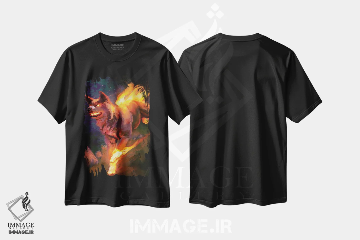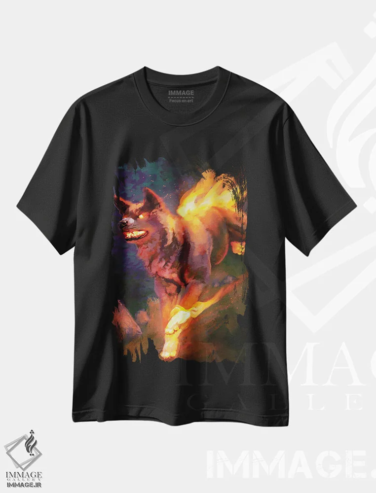 تیشرت مشکی طرح دار – تیشرت فانتزی ,سگ آتشین اثر لوییز گلبی immage.ir