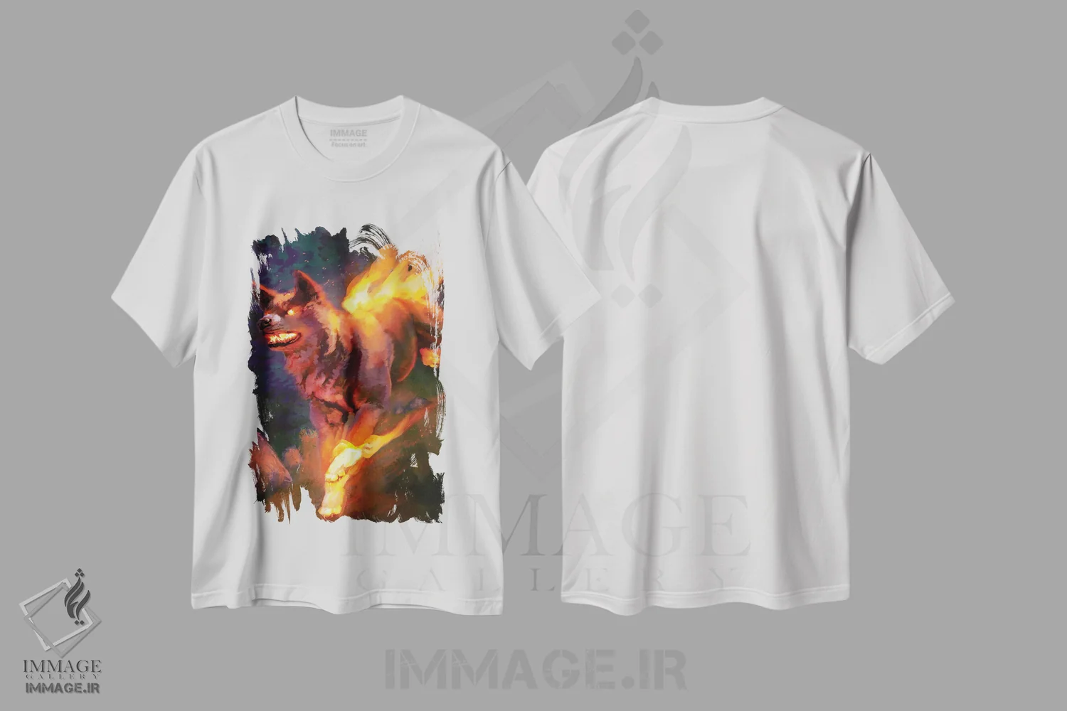 تیشرت سفید طرح دار – تیشرت فانتزی ,سگ آتشین اثر لوییز گلبی فروشگاه ایماژ