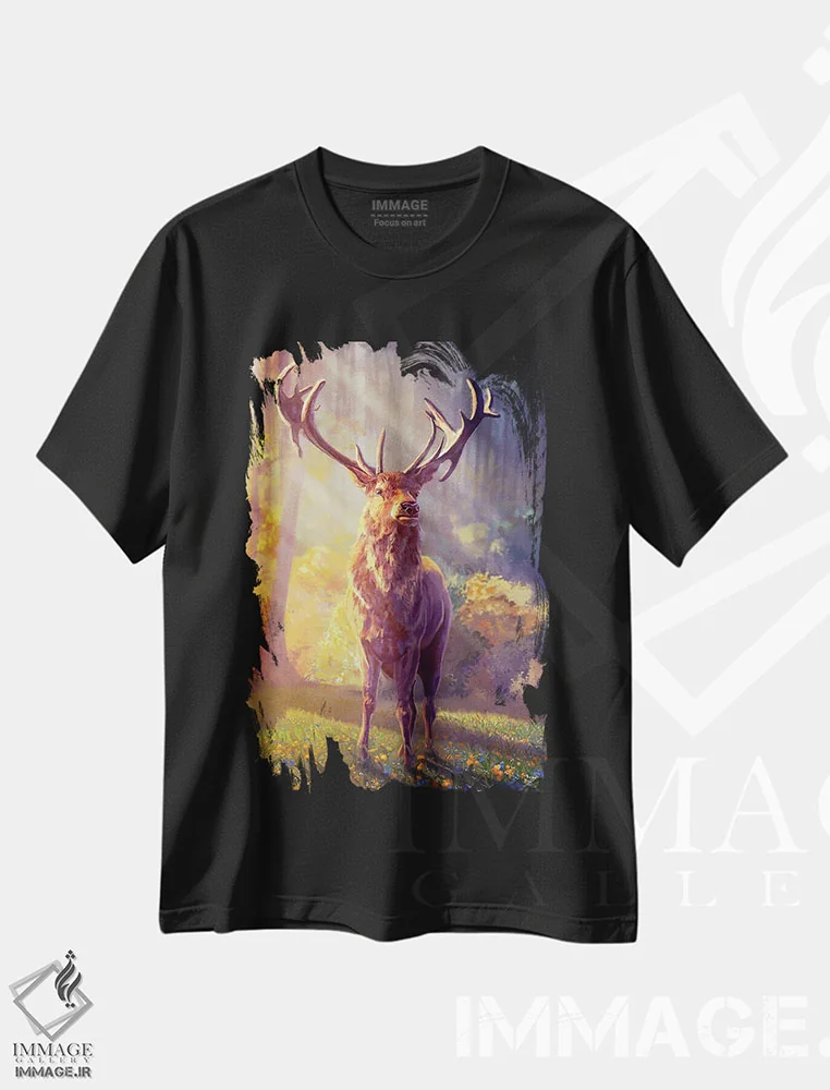 «شکوه سلطنتی»؛ تی شرت هنری با نماد گوزن و آرامش