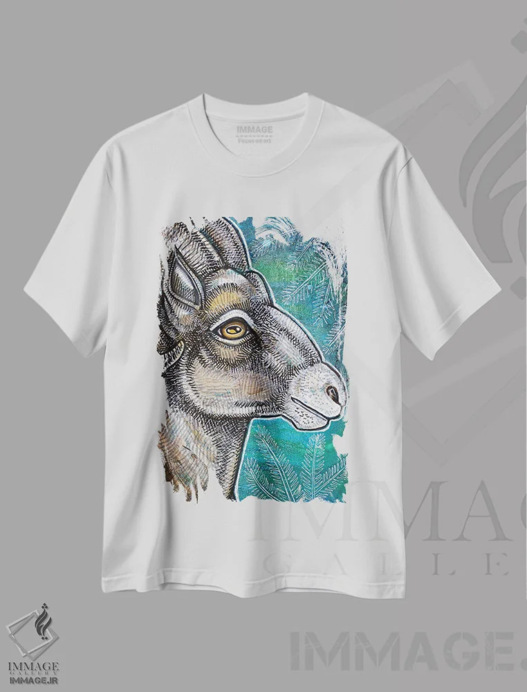 تیشرت سفید طرح دار – تیشرت حیوانات ,شاخ بزرگ اثر لینت شلی immage.ir