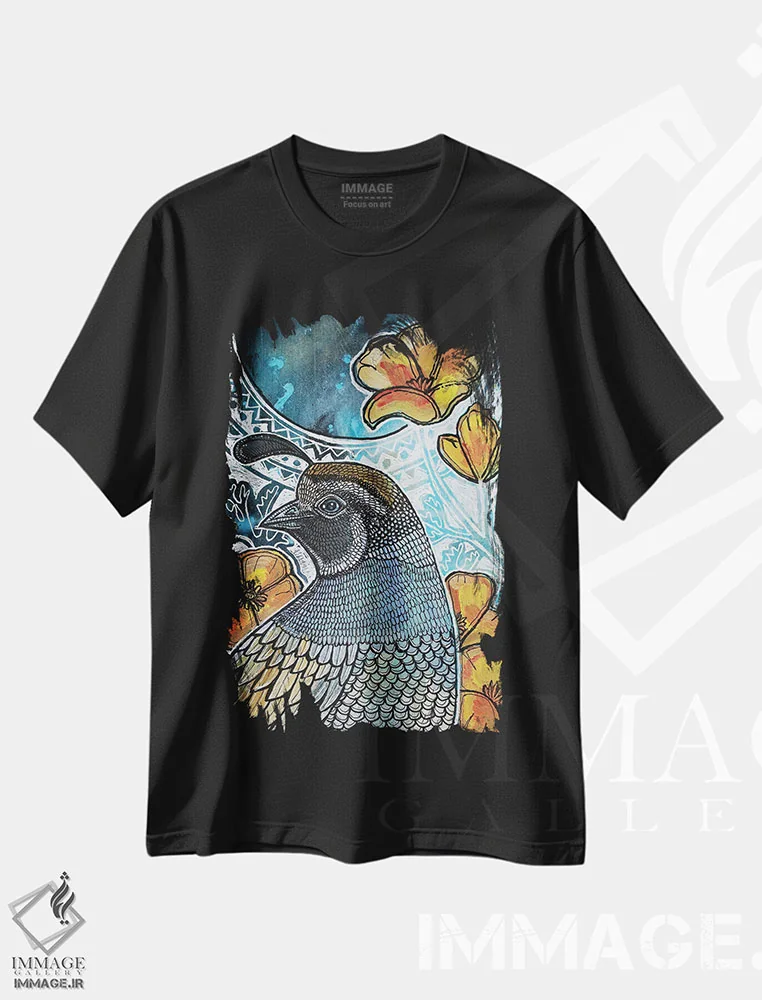 بلدرچین کالیفرنیا روی تی شرت؛ طبیعت رنگین برای استایل شهری