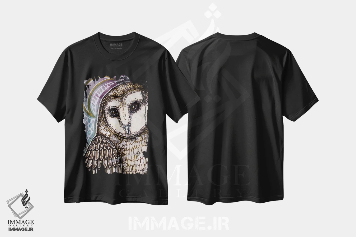 تی شرت هنری «ماه هلال و جغد»؛ ترکیب آرامش و راز