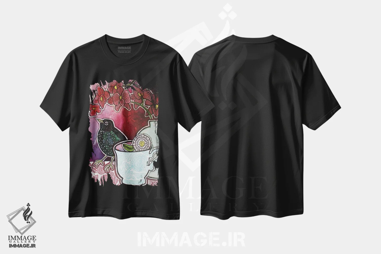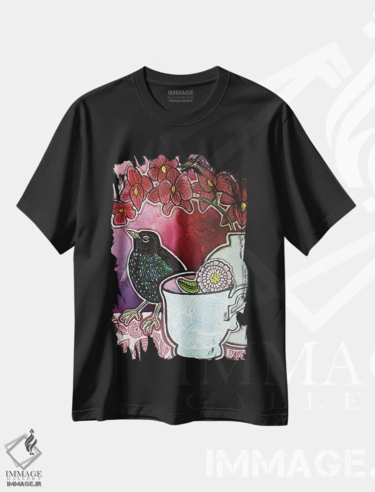 تیشرت مشکی طرح دار – تیشرت گلدار ,مهمان چای اثر لینت شلی immage.ir
