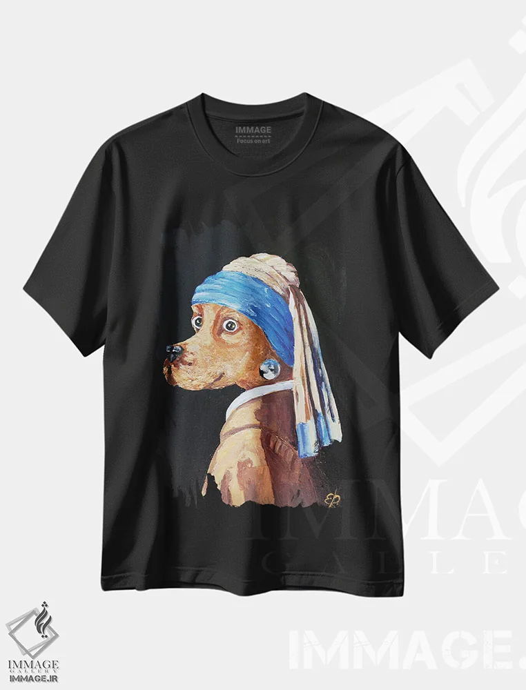 تی شرت هنری «سگ با گوشواره مروارید»؛ طنز کلاسیک با جذابیت مدرن