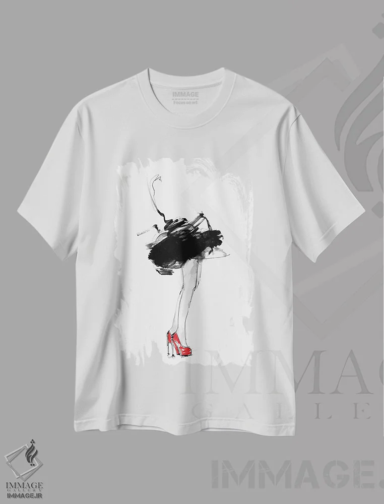 تیشرت سفید طرح دار – تیشرت مد زنانه ,کفش های قرمز اثر لوتا لارسداتر فروشگاه ایماژ