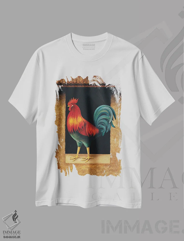 تی شرت طرح «خروس»؛ نماد حیات روستایی در پوشش شهری