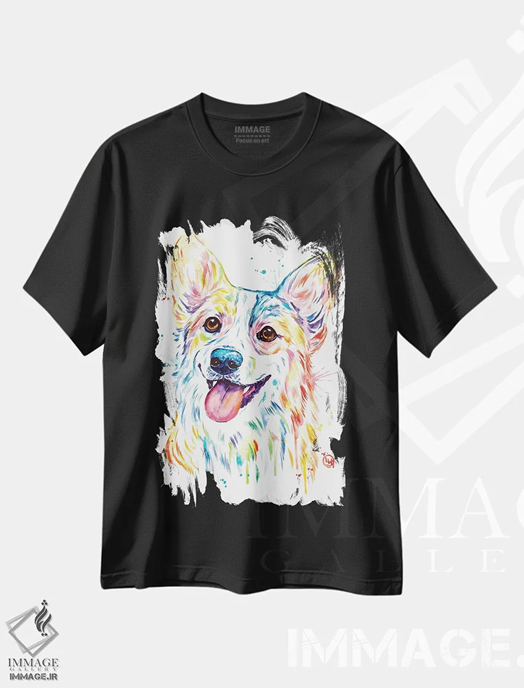تیشرت مشکی طرح دار – تیشرت حیوانات ,کورگی اثر لیزا وایت هاوس immage.ir