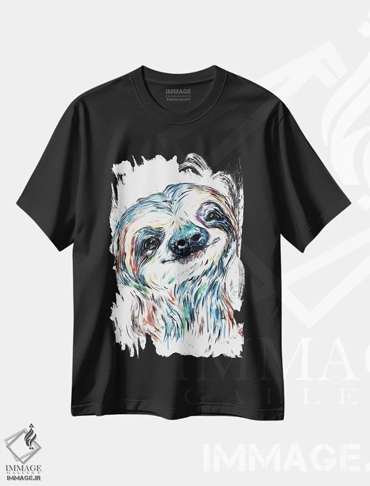 تیشرت مشکی طرح دار – تیشرت حیوانات ,لبخند تنبل اثر لیزا وایت هاوس immage.ir
