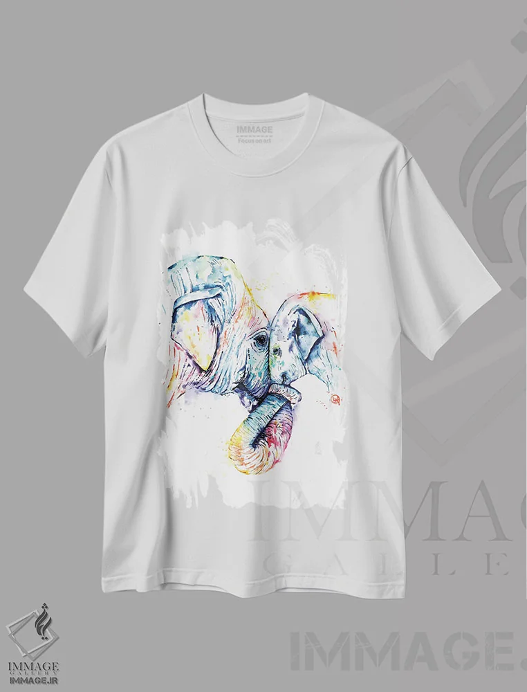 تی شرت هنری «فیل مادر و بچه»؛ لطافت زندگی در طبیعت و پیشنهاد ست روزمره