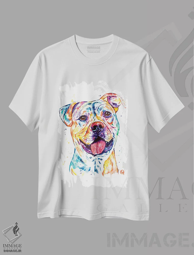 تیشرت سفید طرح دار – تیشرت حیوانات ,استافوردشایر بول تریر اثر لیزا وایت هاوس immage.ir