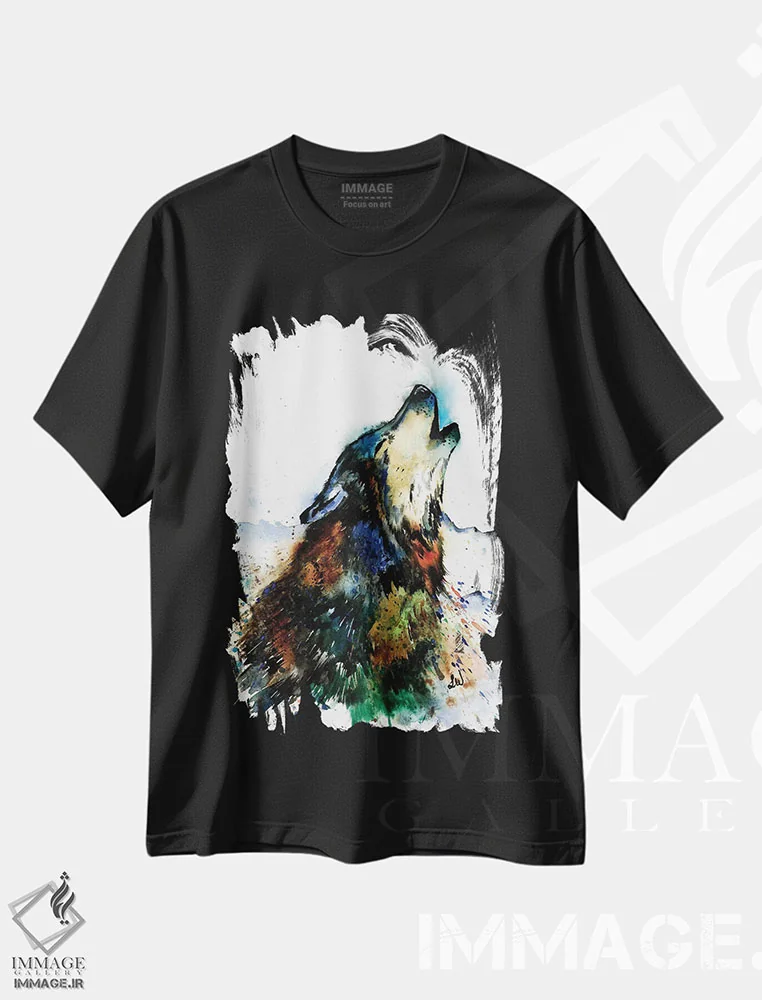 تیشرت مشکی طرح دار – تیشرت حیوانات ,گرگ زوزه کش اثر لیزا وایت هاوس immage.ir
