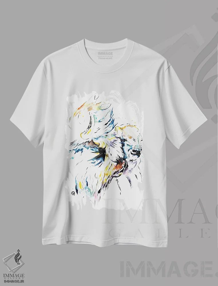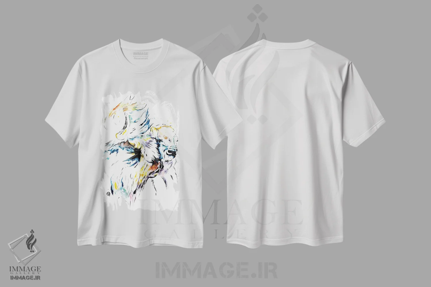 تیشرت سفید طرح دار – تیشرت طبیعت ,گاومیش آمریکایی اثر لیزا وایت هاوس immage.ir