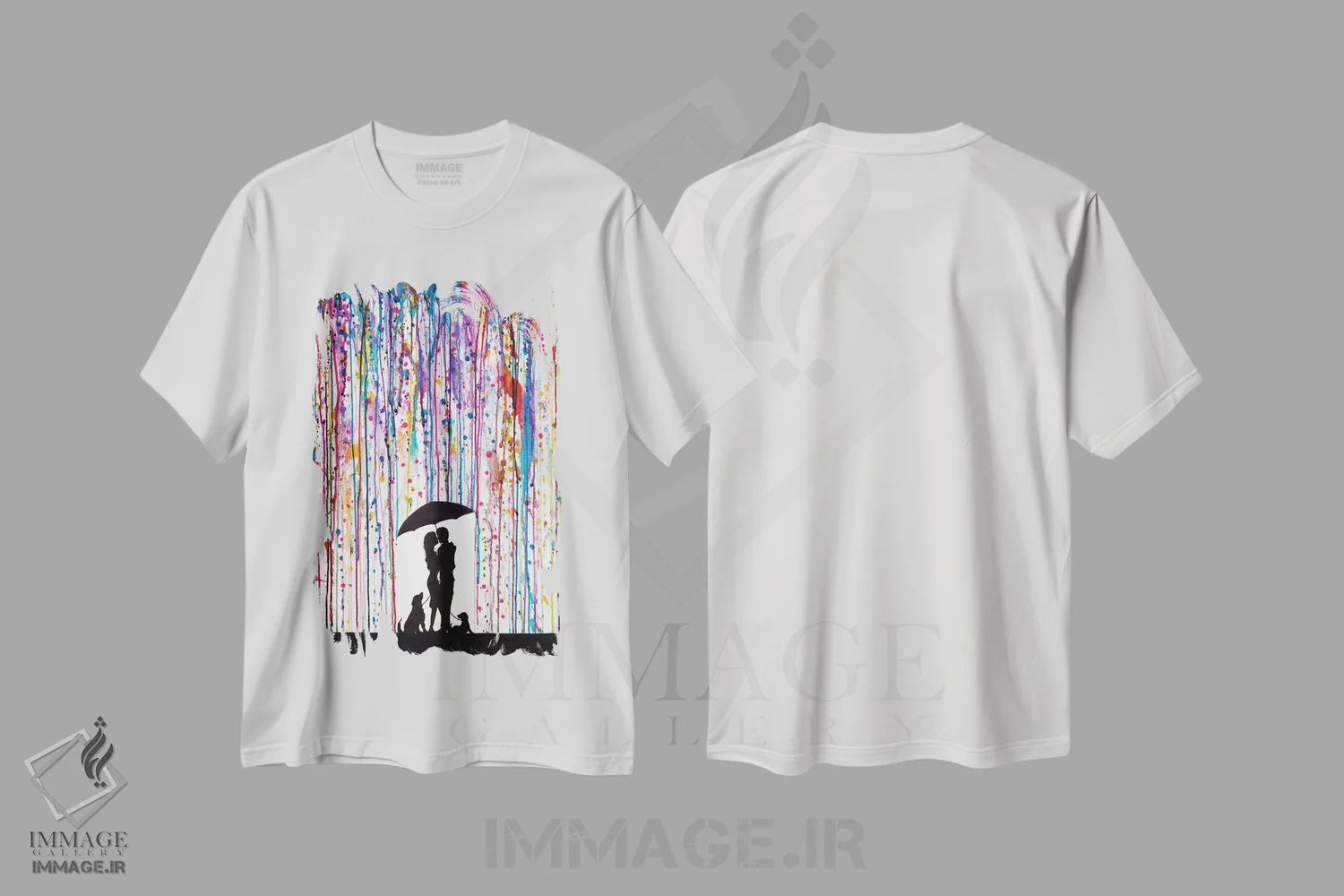 تیشرت سفید طرح دار – تیشرت هنری عاشقانه ,درهم تنیده اثر مارک آلانته فروشگاه ایماژ