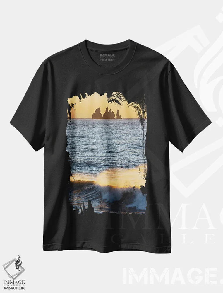 تی شرت منظره «نور غروب»؛ ترکیب ساحل و رنگ های شاعرانه