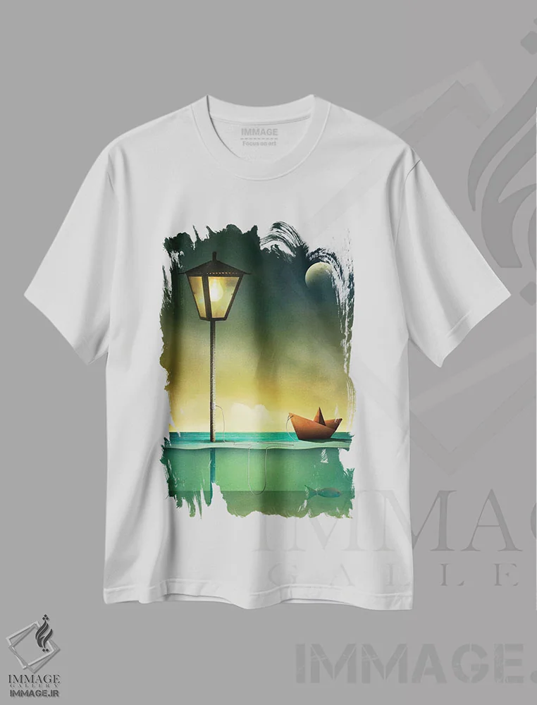 تیشرت طرح فانتزی ,قایق اسباب بازی در آرامش اثر مارسل کارام