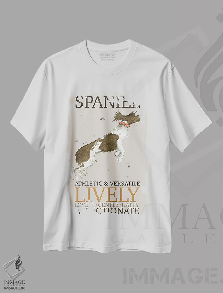 تی شرت طرح «اسپانیل»؛ دقت هنری در نقاشی نژادهای سگ