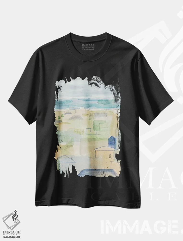تیشرت مشکی طرح دار – تیشرت هنری منظره ,ساحل مدیترانه II اثر مگان میگر immage.ir