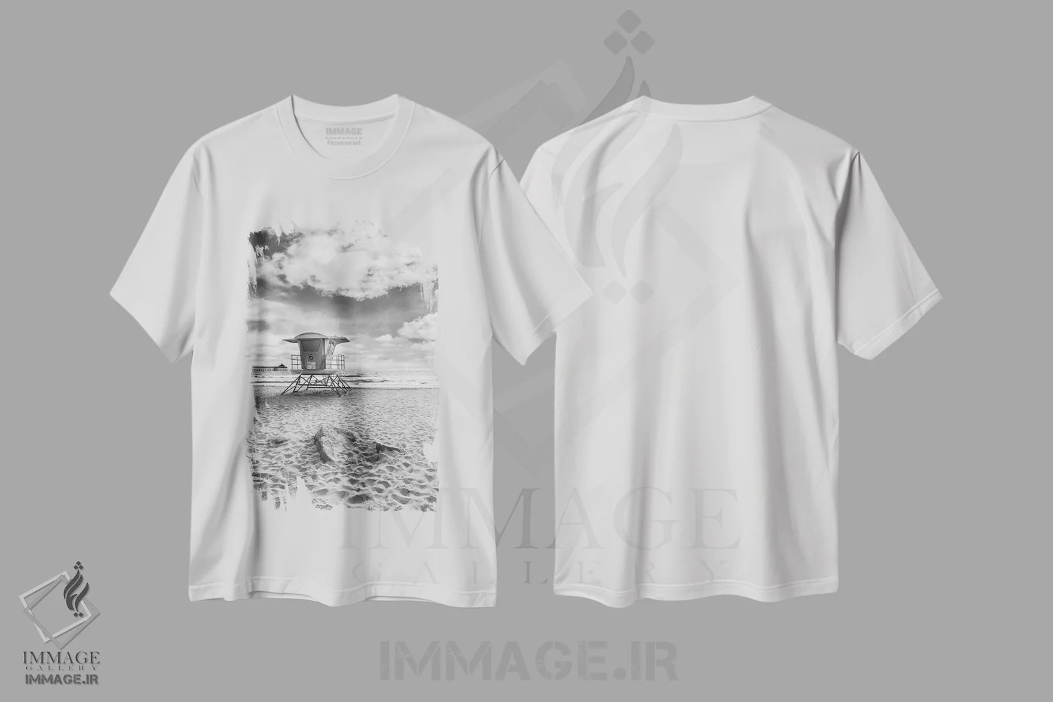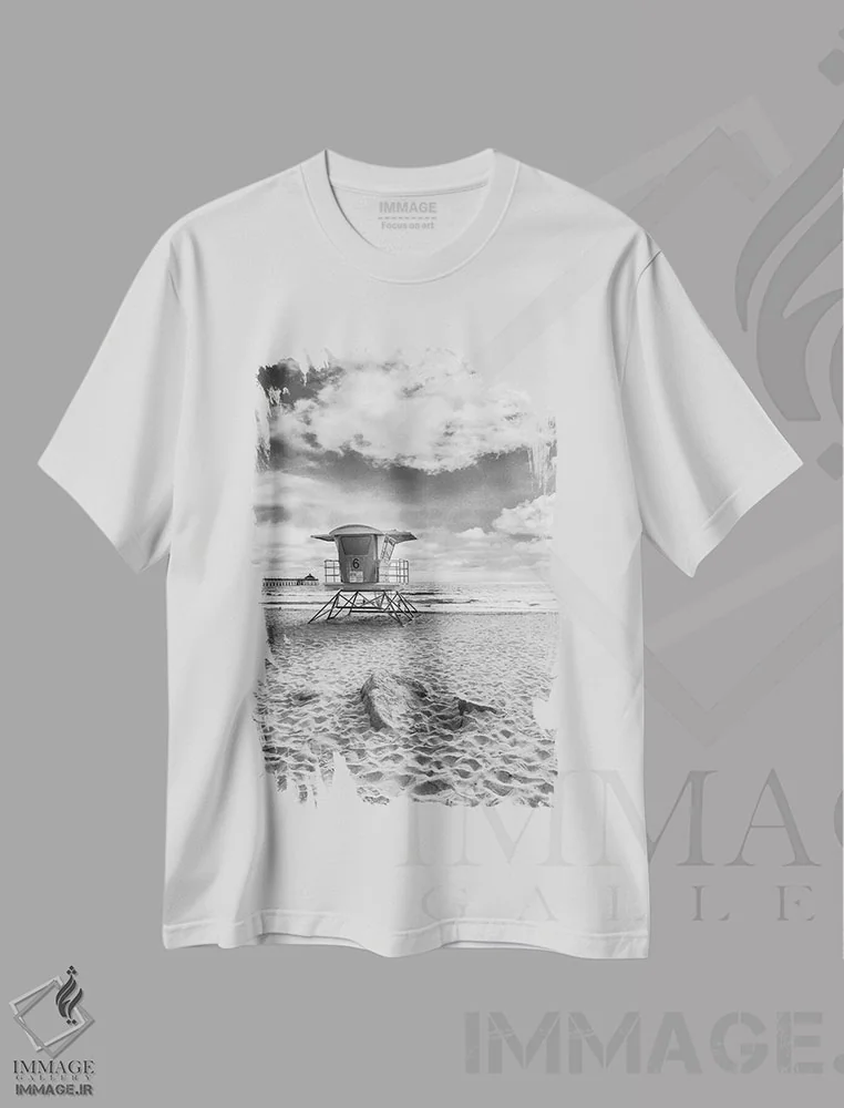 تیشرت سفید طرح دار – تیشرت طبیعت ساحلی ,ساحل امپریال کالیفرنیا به صورت تک رنگ اثر ملانی ویولا immage.ir