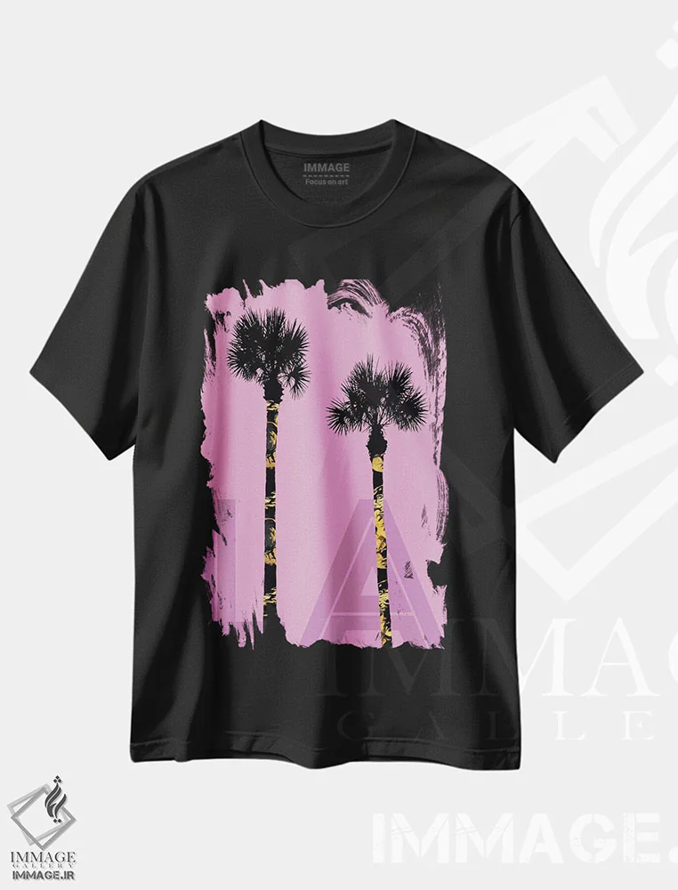 تی شرت طرح دار «نخل های لس آنجلس» رنگ صورتی؛ حس آفتاب و زندگی آزاد