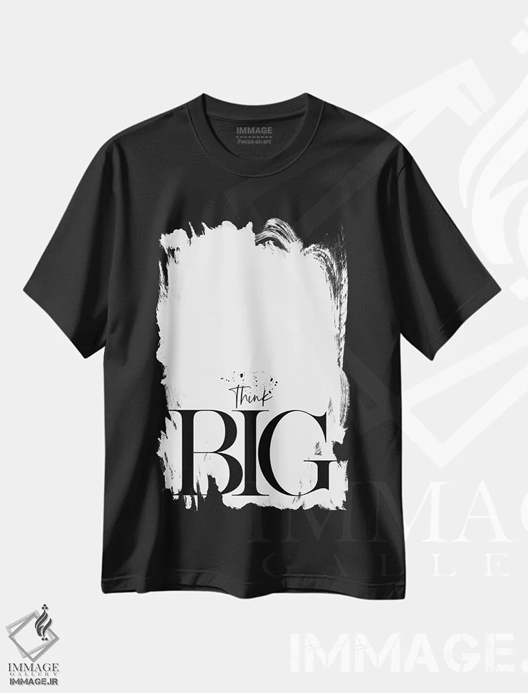 تی شرت سیاه و سفید «بزرگ فکر کن»؛ تایپوگرافی مدرن برای ذهن های جسور