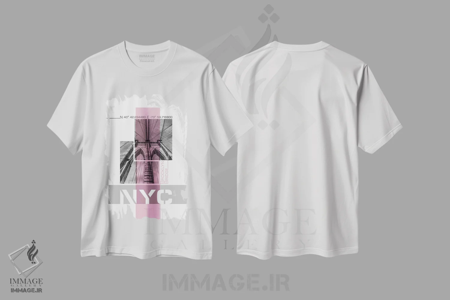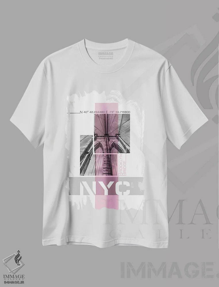 تیشرت سفید طرح دار – تیشرت شهری ,پوستر آرت جزئیات پل بروکلین نیویورک | صورتی اثر ملانی ویولا immage.ir