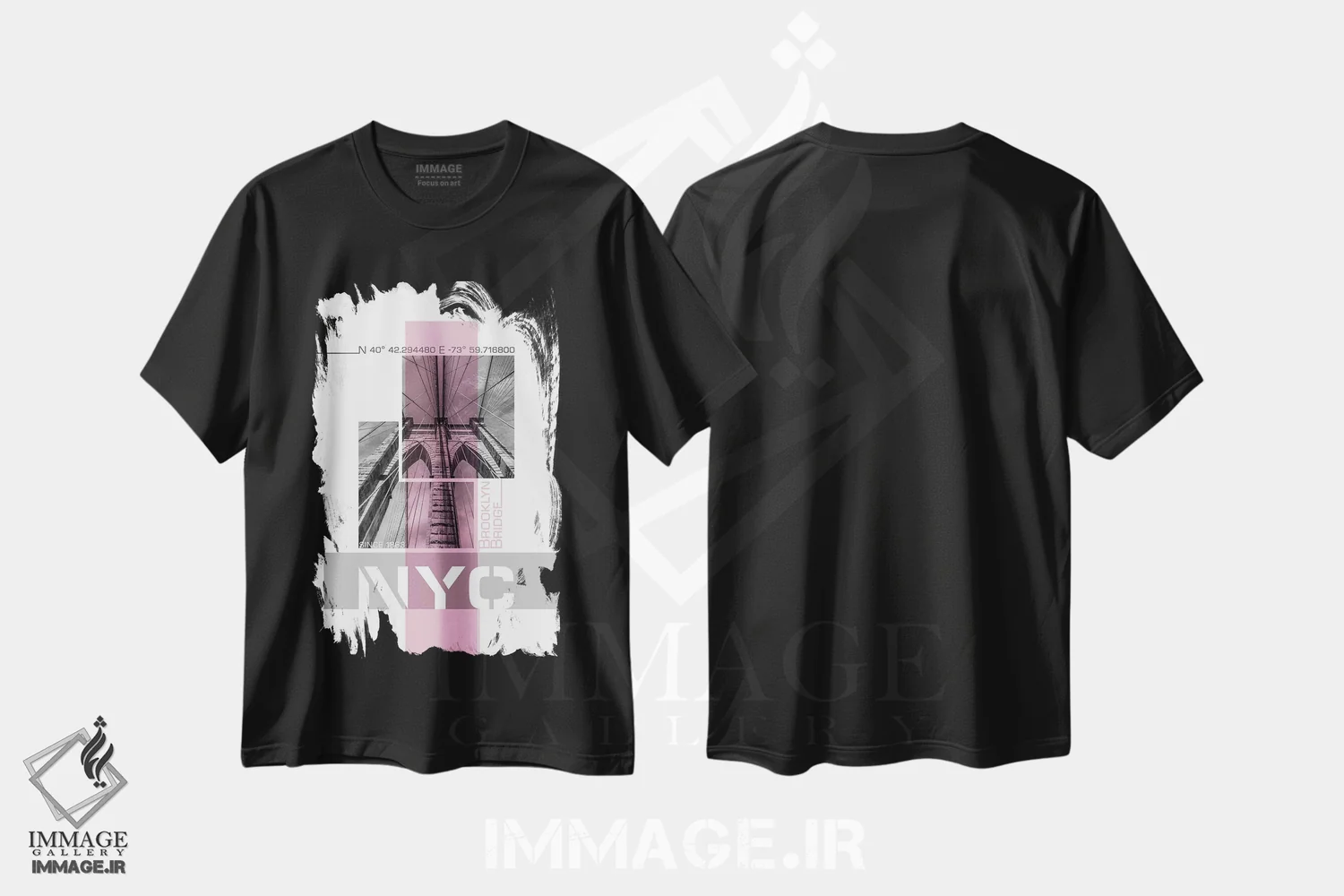 تیشرت مشکی طرح دار – تیشرت شهری ,پوستر آرت جزئیات پل بروکلین نیویورک | صورتی اثر ملانی ویولا فروشگاه ایماژ