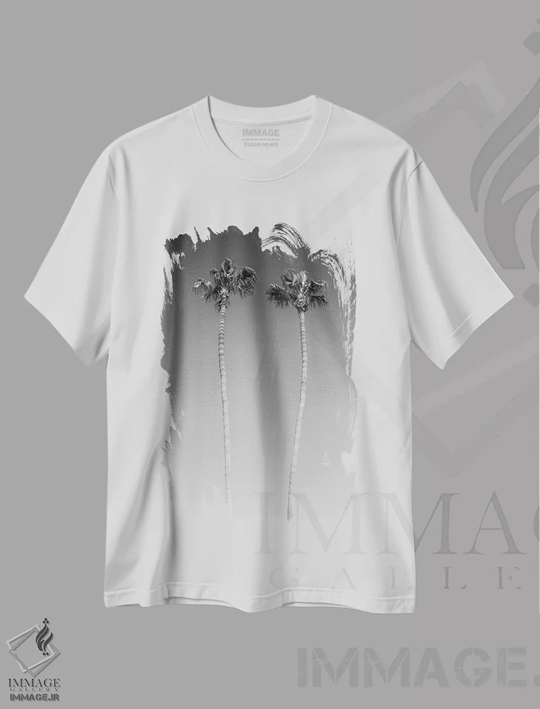 تی شرت سیاه وسفید «درختان نخل»؛ مینیمالیسم و تضاد آرام