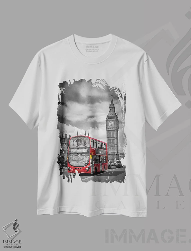 تیشرت طرح شهری ,پارلمان لندن و اتوبوس قرمز اثر ملانی ویولا