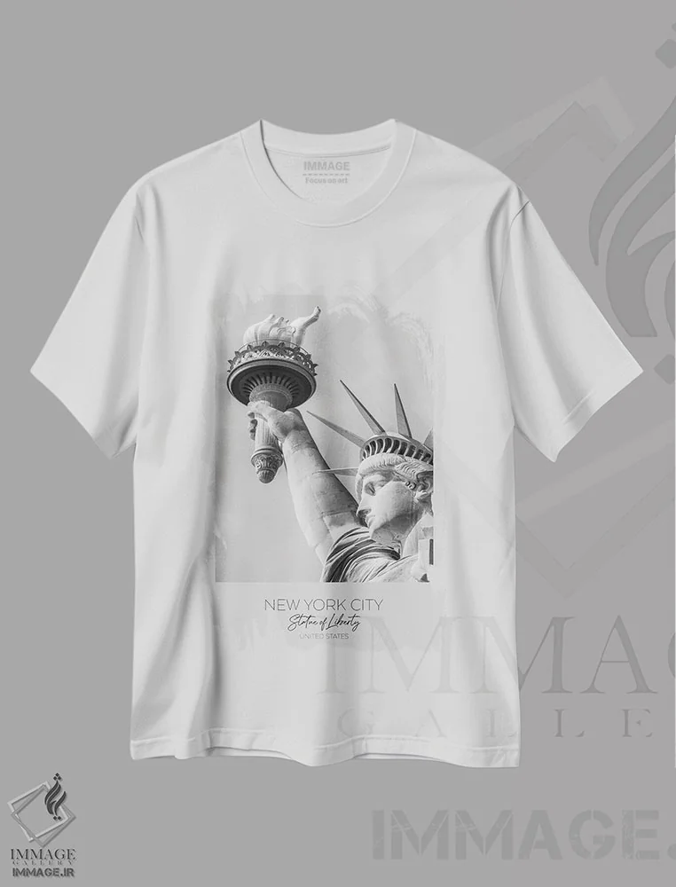جزئیات مجسمه آزادی؛ تیشرتی هنری از نگاه کلوزآپ سیاه وسفید
