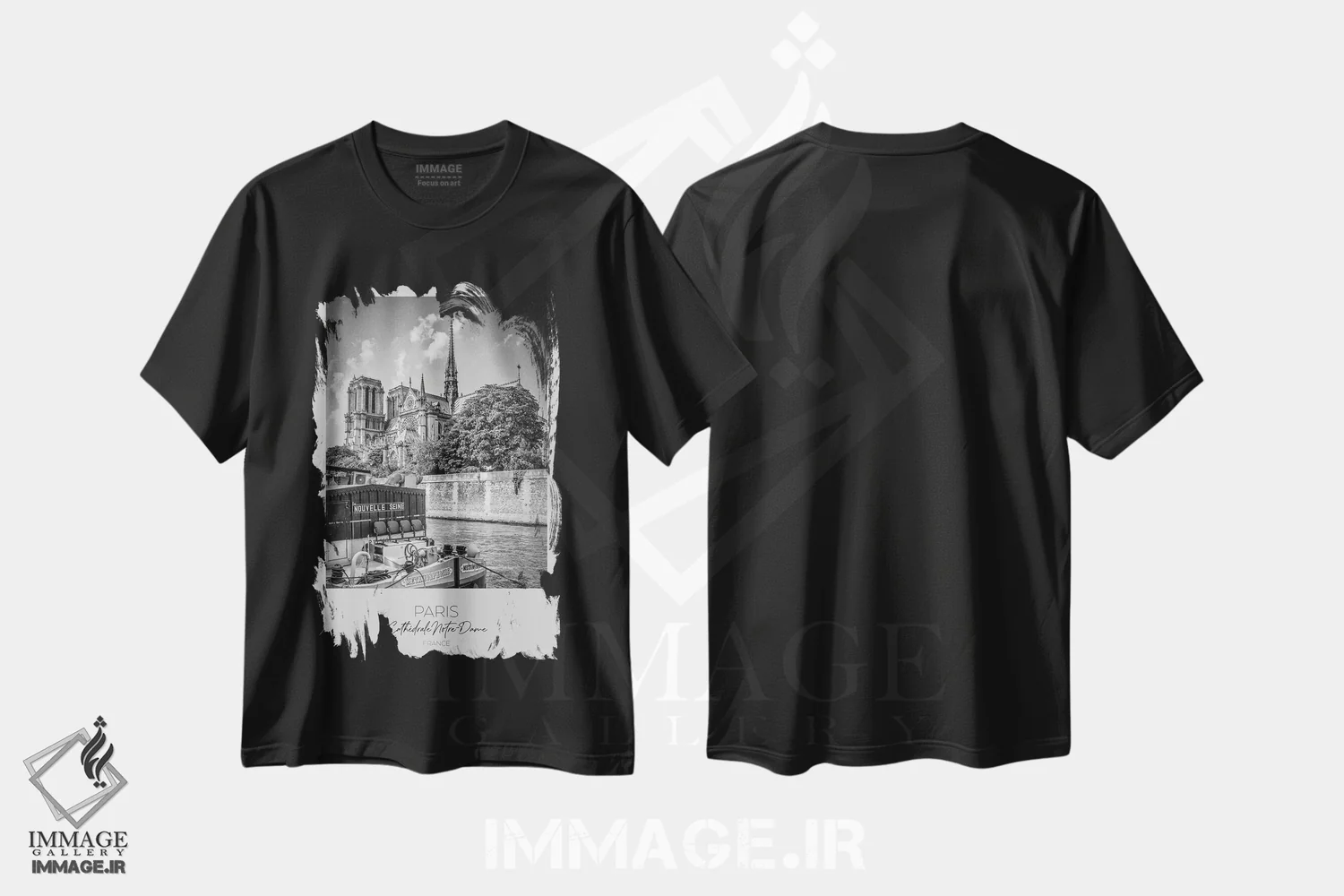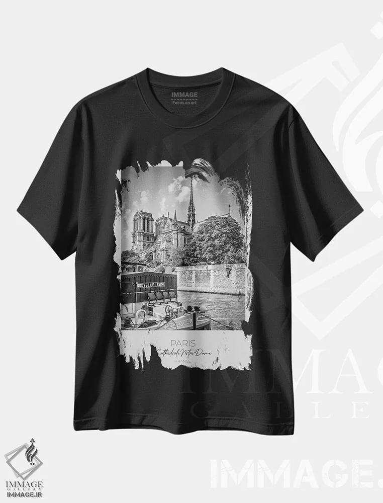 تیشرت مشکی طرح دار – تیشرت کلاسیک ,در کانون توجه: کلیسای نوتردام پاریس اثر ملانی ویولا immage.ir