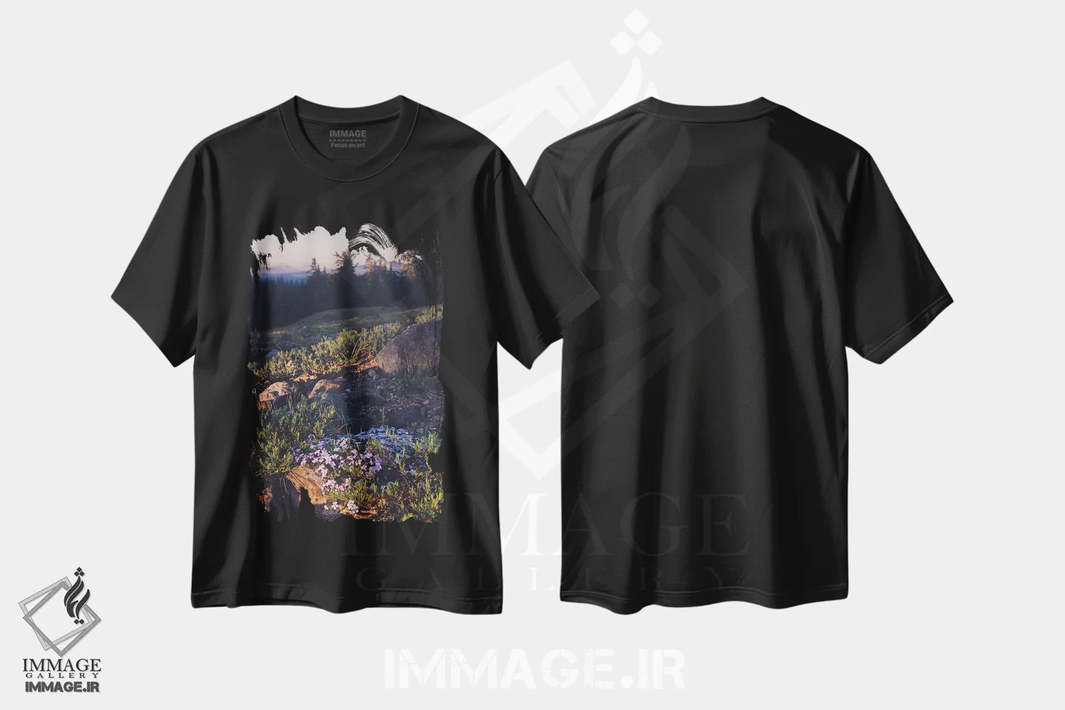 تی شرت هنری «غروب با گل های بنفش کوهستان»؛ حس رهایی و رنگ