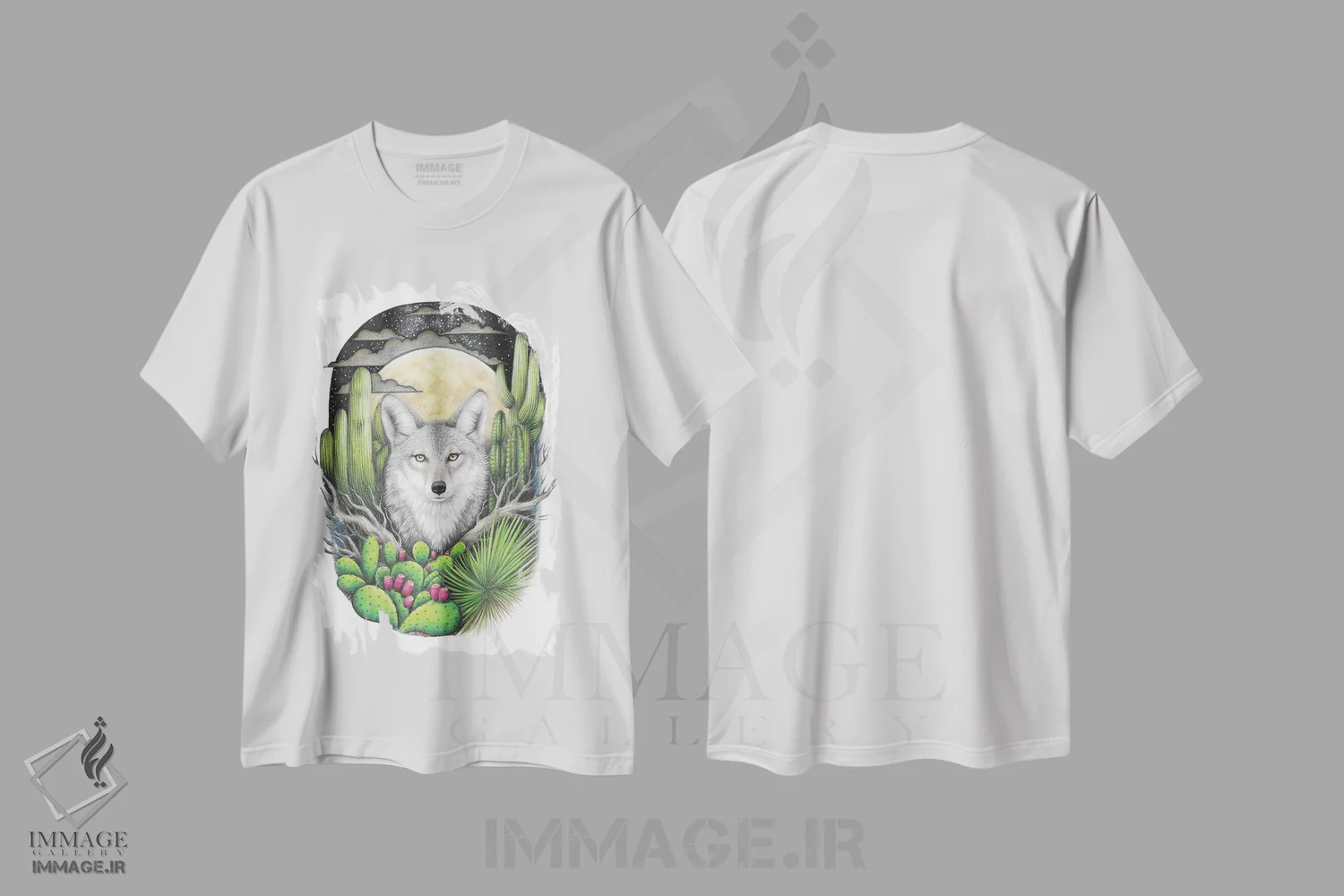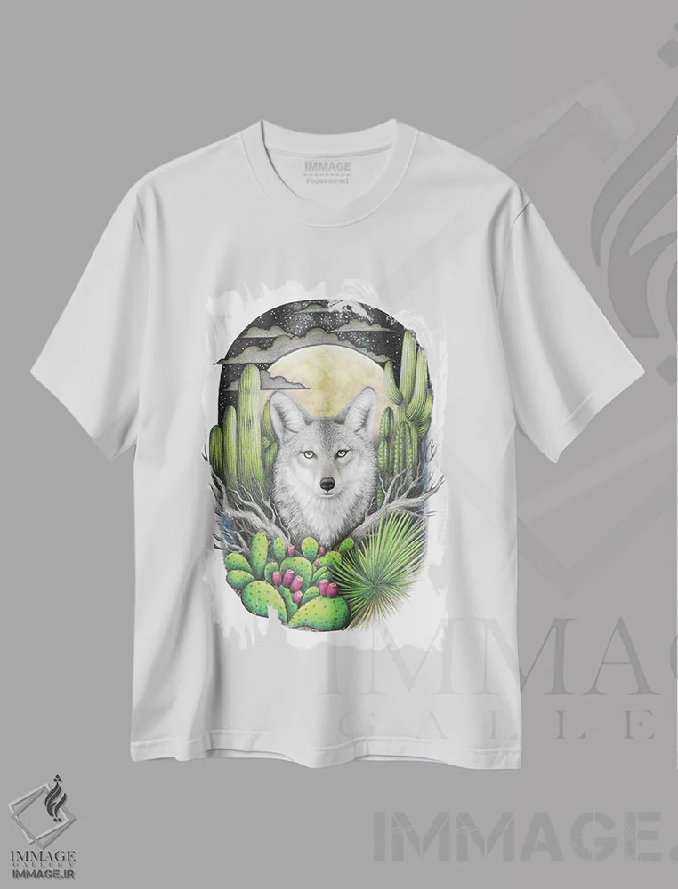 تیشرت طرح هنری ,کایوت با گیاهان گوشتی اثر مندی هک