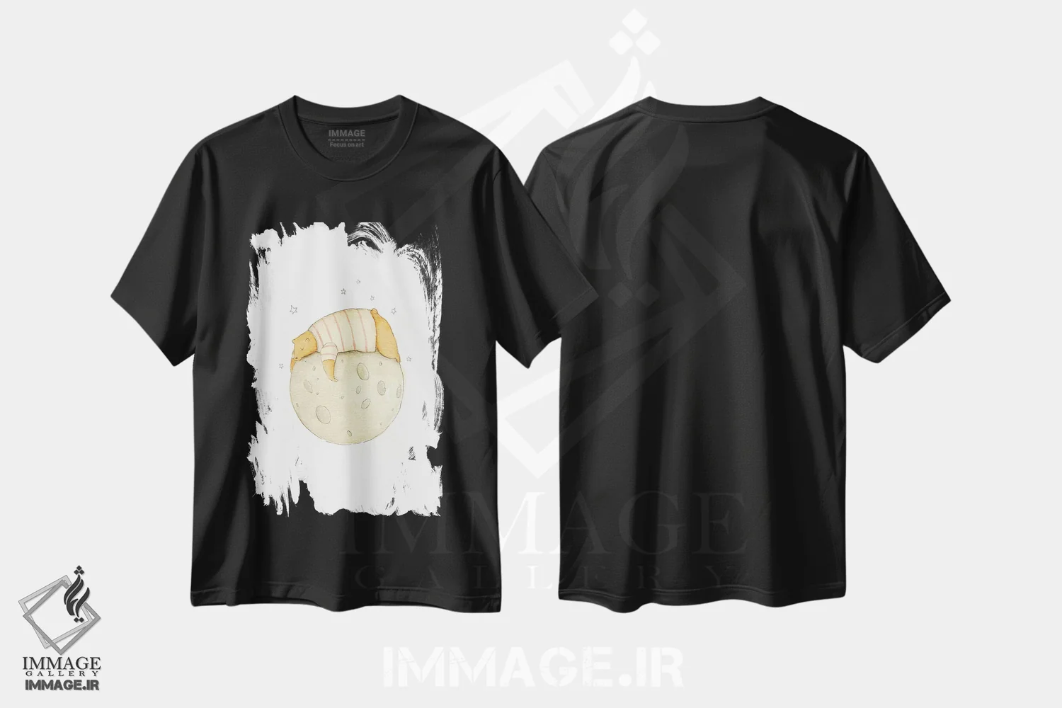 تیشرت مشکی طرح دار – تیشرت فانتزی ,"گیر افتاده در ماه " اثر مایک کوبو فروشگاه ایماژ