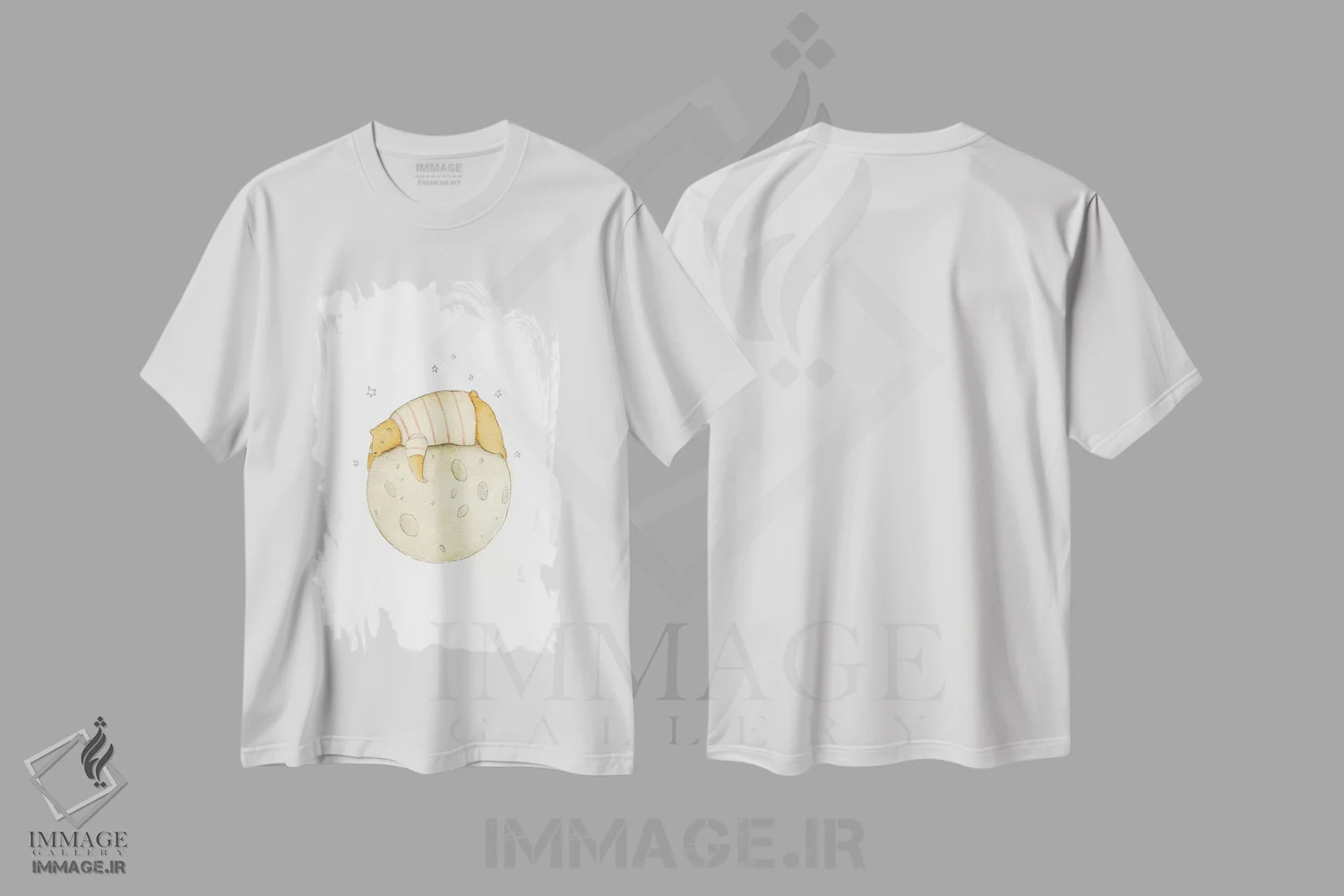 تیشرت سفید طرح دار – تیشرت فانتزی ,"گیر افتاده در ماه " اثر مایک کوبو immage.ir
