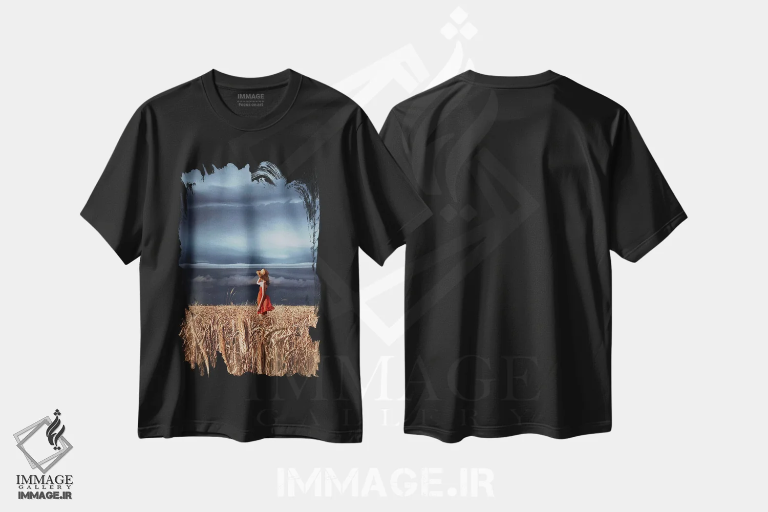 تیشرت مشکی طرح دار – تیشرت هنری ,مزارع گندم و رعدوبرق اثر هوبوپیبا immage.ir