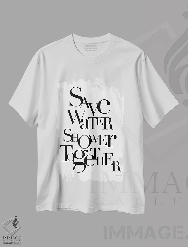 تیشرت طرح تایپوگرافی ,"آب را ذخیره کن، با هم دوش بگیر" اثر مرسدس لوپز چارّو