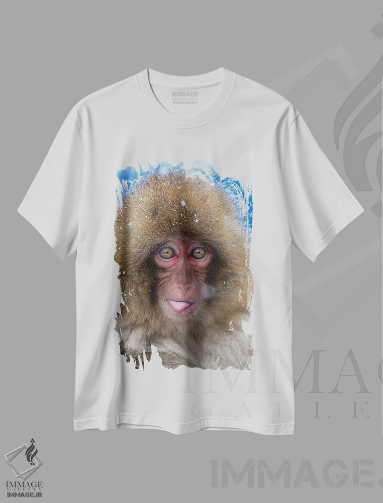 تیشرت طرح طبیعت ,میمون برفی در حال گرفتن برف اثر موگنس تروله