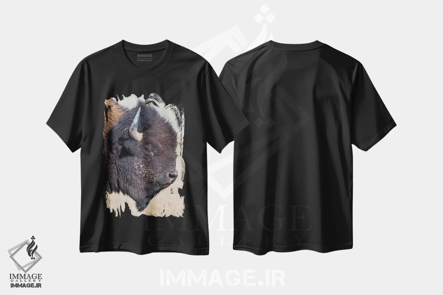 تیشرت طرح حیوانات ,نمای نیم رخ گاومیش آمریکایی پارک گرند تیتون اثر موگنس تروله
