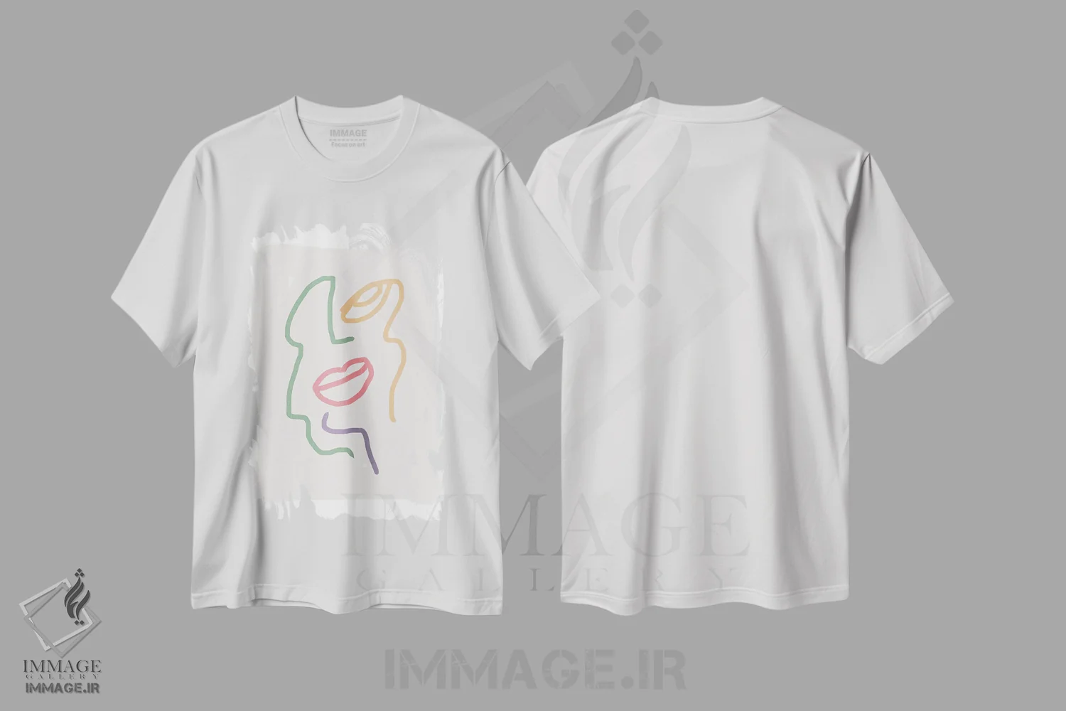 تیشرت سفید طرح دار – تیشرت هنری ,نقاشی خطی چهره با رنگ های پاستلی اثر مامبو آرت استودیو immage.ir