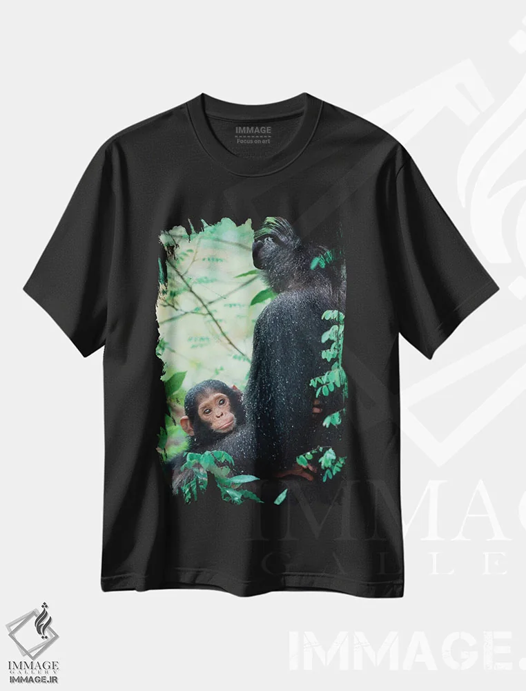 تی شرت «شامپانزه مادر و نوزاد پس از طوفان»؛ طرحی شاعرانه برای دل های طبیعت دوست