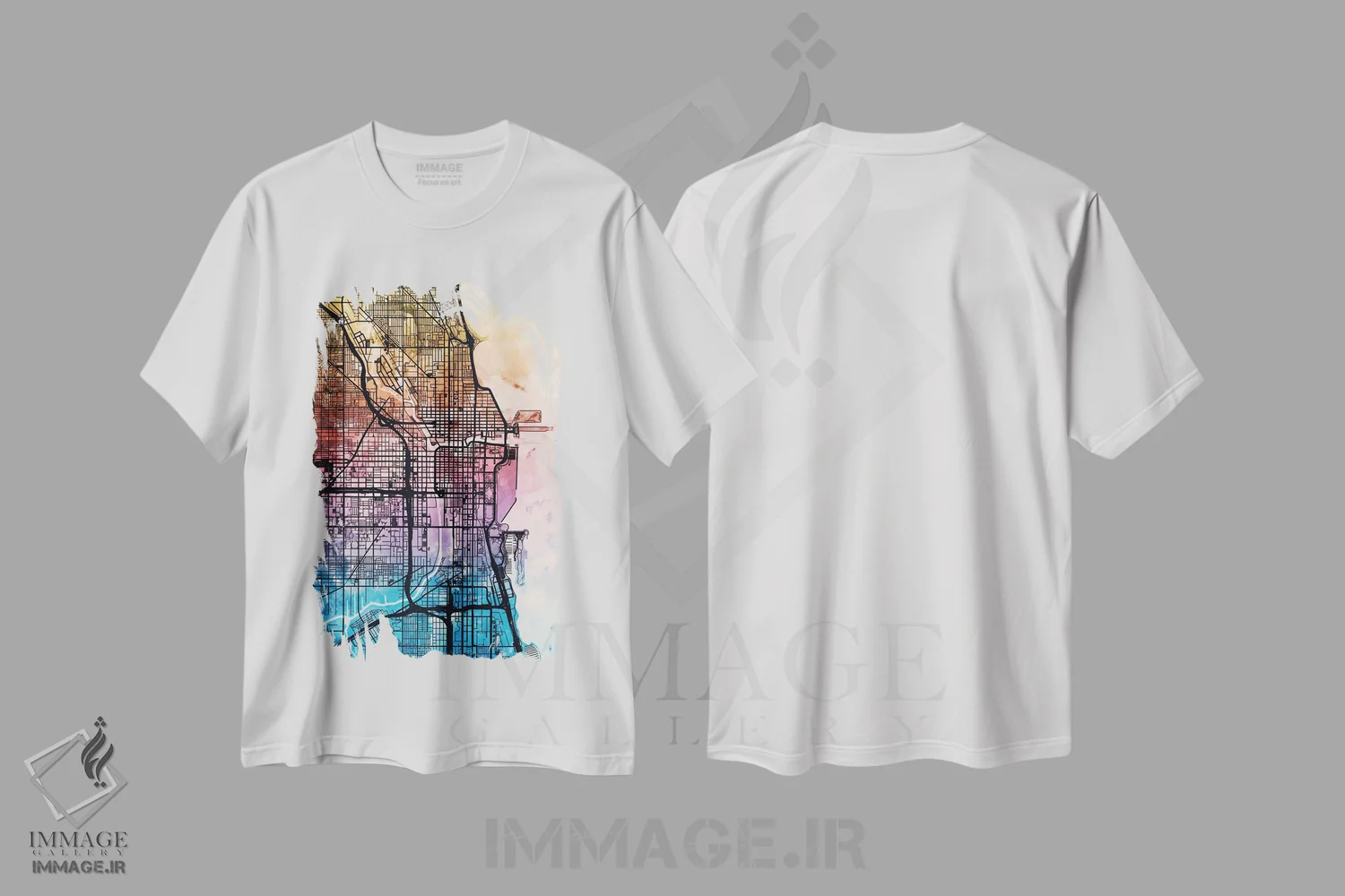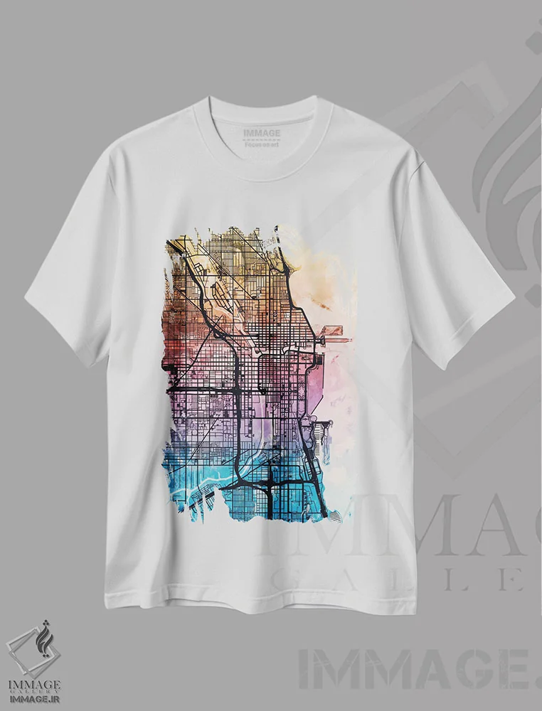 تیشرت طرح نقشه شهری ,Illinois, USA,شیکاگو، ایلینوی اثر مایکل تامپست