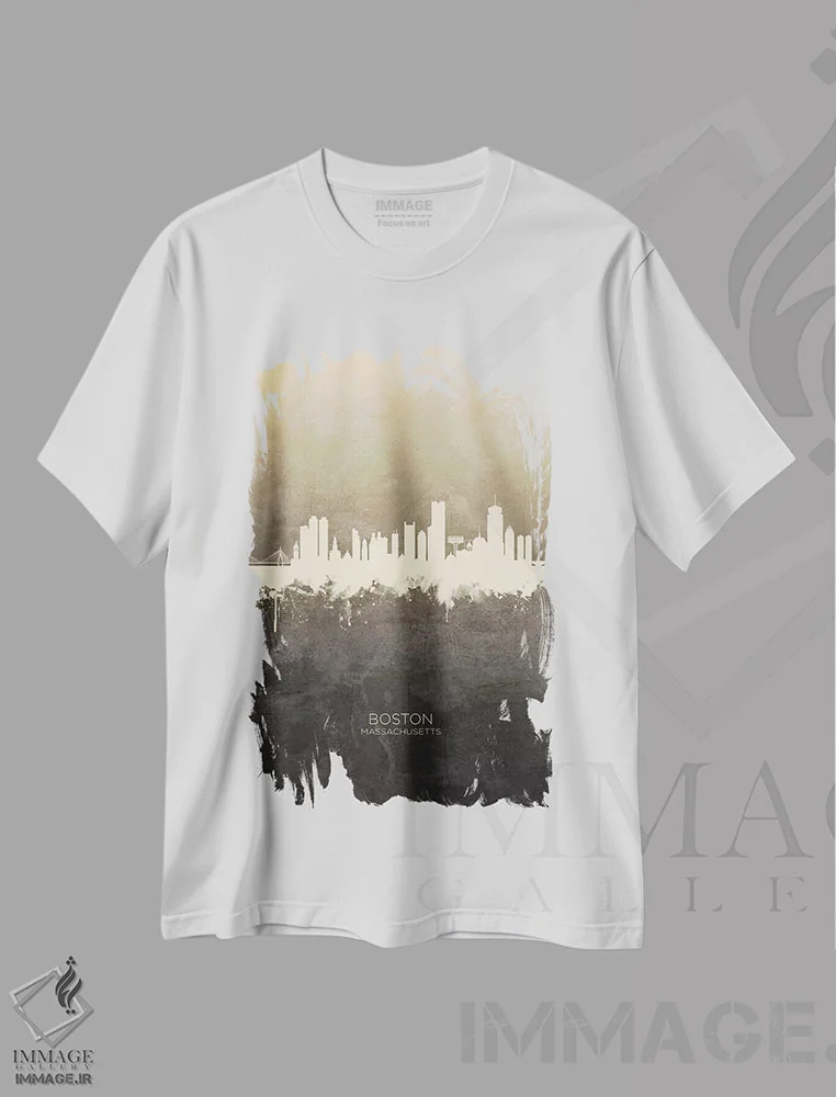 تیشرت طرح مینیمال شهری ,خط افق بوستون ماساچوست خاکستری مایل به قهوه ای اثر مایکل تامپست