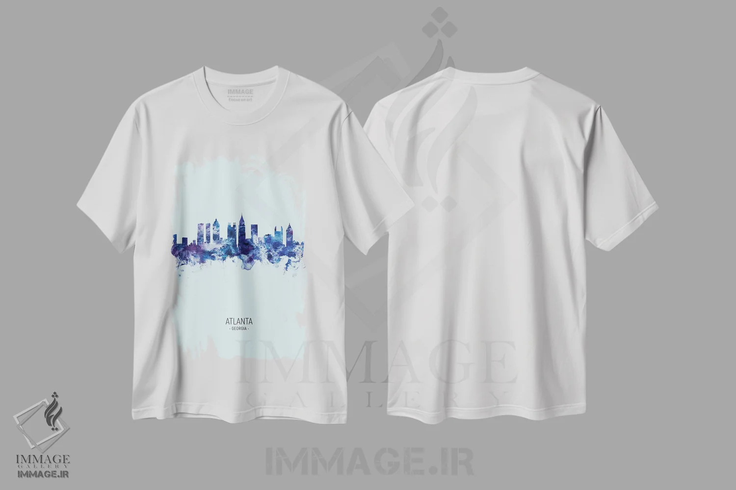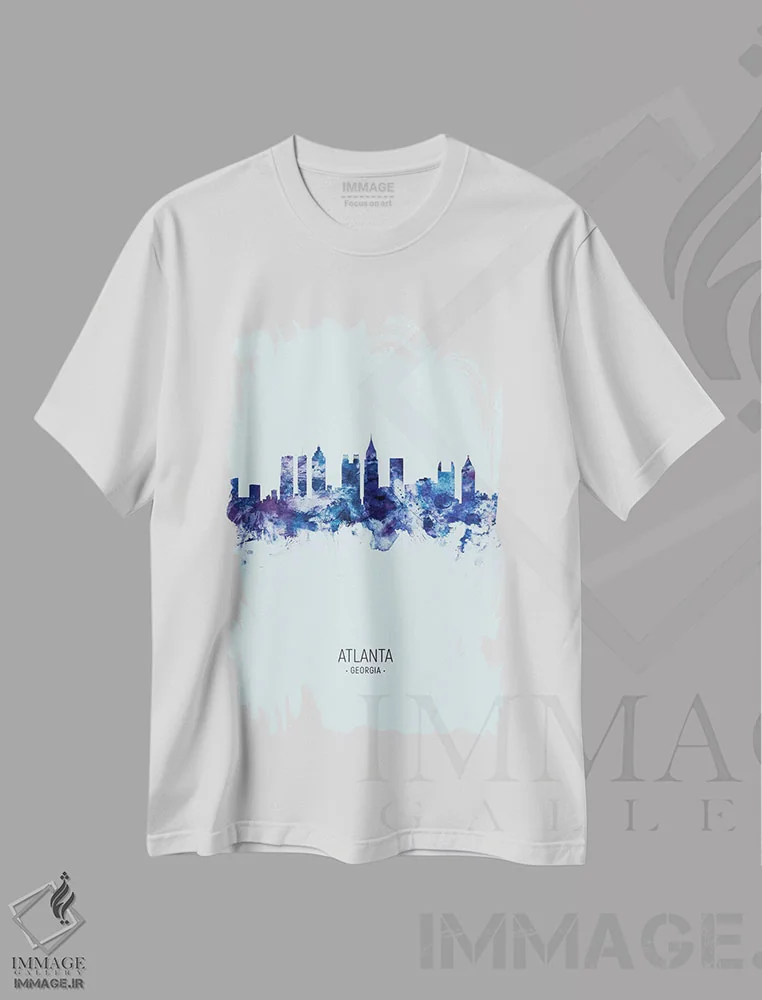 تیشرت طرح شهری ,خط افق آتلانتا جورجیا پرتره آبی تیره اثر مایکل تامپست