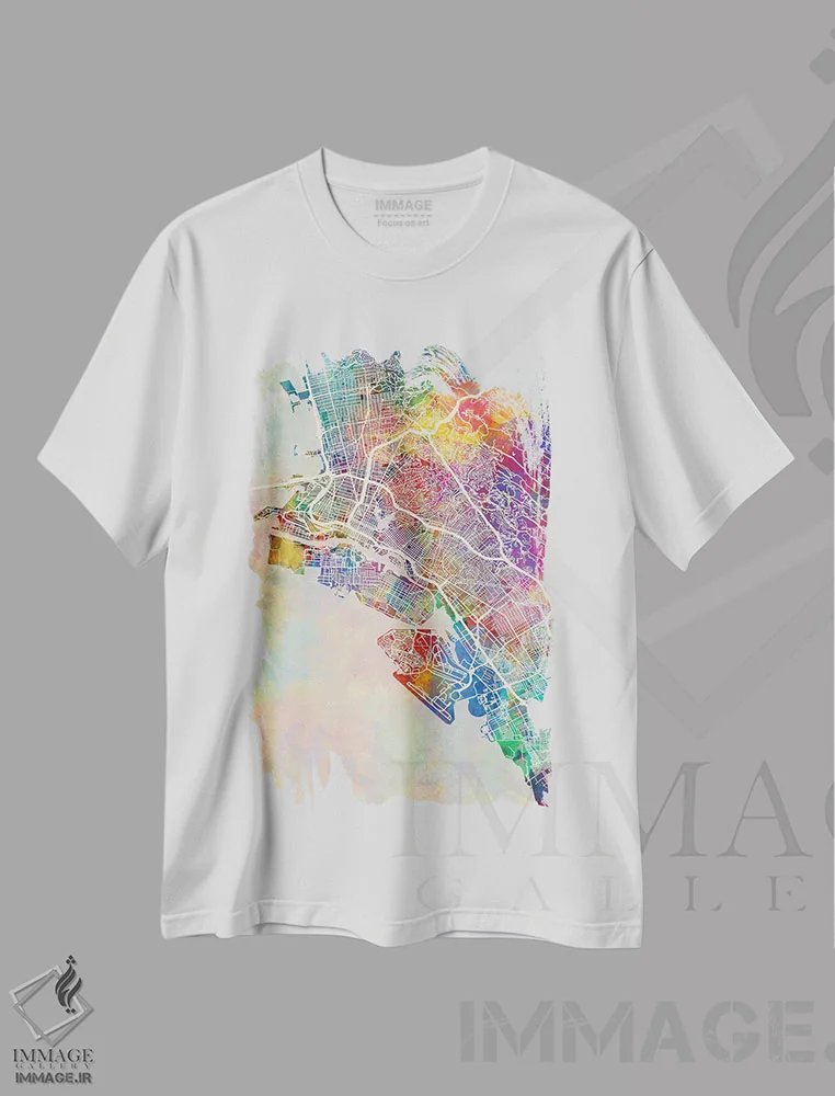 تیشرت طرح شهری ,نقشه اوکلند کالیفرنیا اثر مایکل تامپست