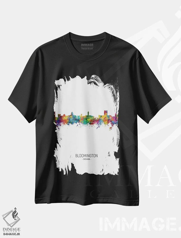 تیشرت طرح شهری ,نمای پرترهٔ خط افق بلومینگتون ایندیانا اثر مایکل تامپست