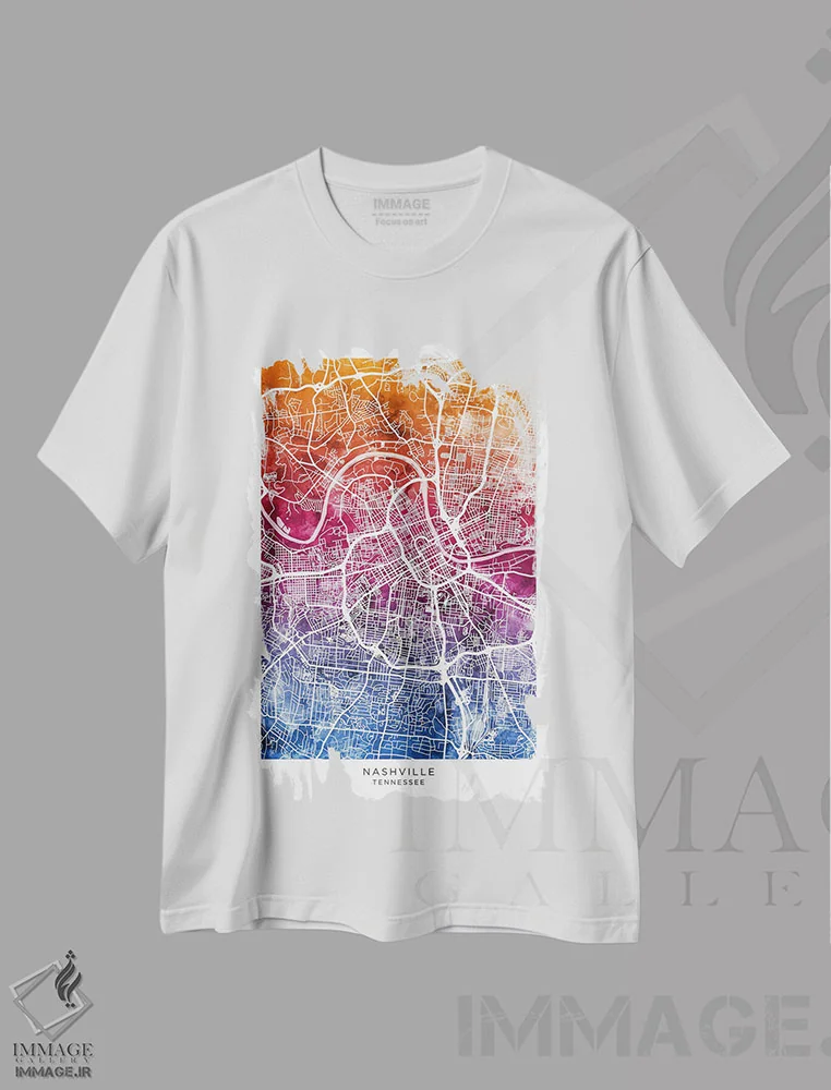 تیشرت طرح هنری شهری ,نقشه نشویل آبی-صورتی اثر مایکل تامپست