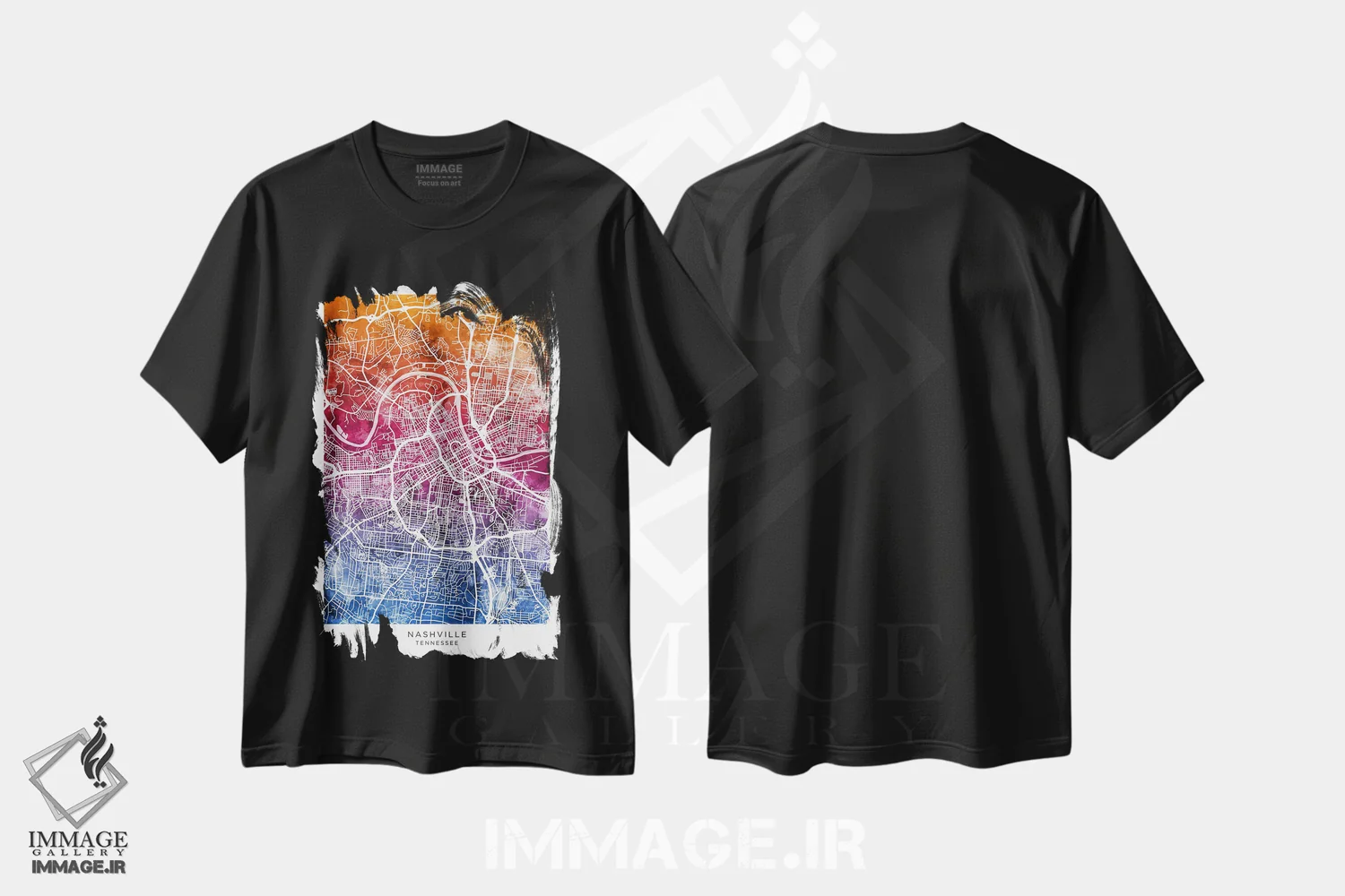 تیشرت مشکی طرح دار – تیشرت هنری شهری ,نقشه نشویل آبی-صورتی اثر مایکل تامپست فروشگاه ایماژ