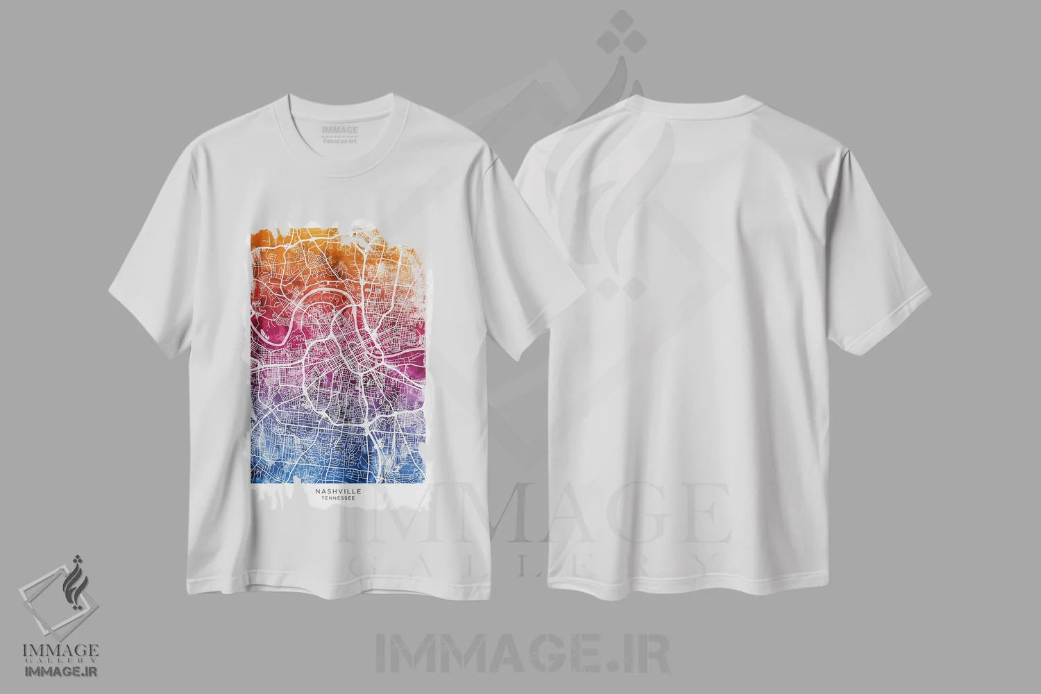 تیشرت سفید طرح دار – تیشرت هنری شهری ,نقشه نشویل آبی-صورتی اثر مایکل تامپست immage.ir